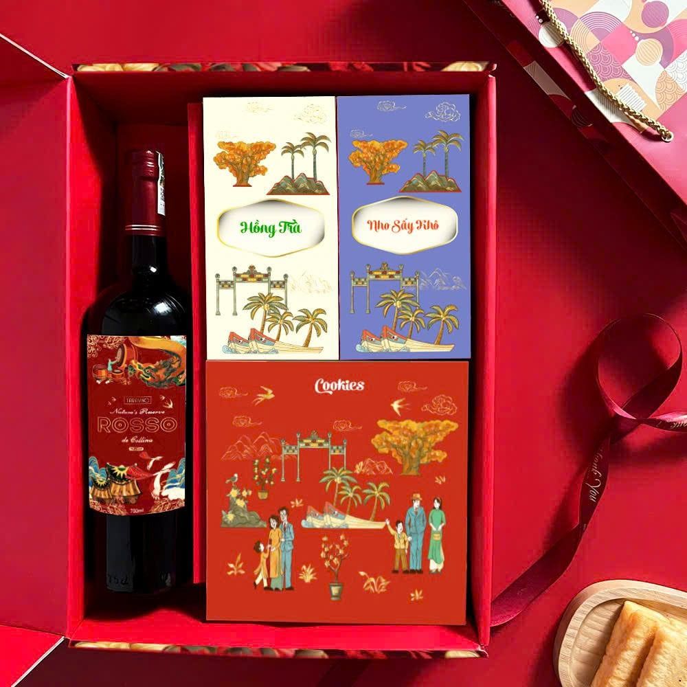 Hộp Quà Tết Đoàn Viên là biểu tượng của sự sum vầy và gắn kết yêu thương trong những ngày đầu năm mới. Lấy cảm hứng từ sắc hoa nở rộ mùa xuân, hộp mang tông đỏ trầm kết hợp ánh vàng kim tuyến, gợi lên cảm giác ấm áp, sang trọng và thịnh vượng.