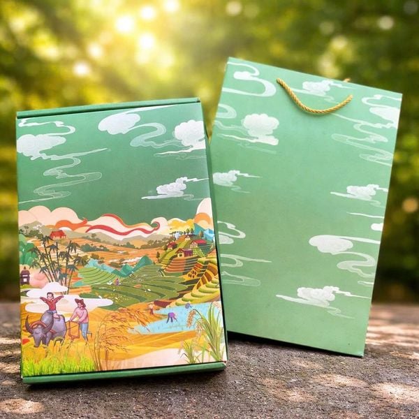 Hộp được làm từ chất liệu giấy cao cấp, ép yên kim tuyến tinh xảo, tạo hiệu ứng ánh sáng lấp lánh, giúp hoa văn nổi bật và bền màu theo thời gian. Mỗi chi tiết đều được thiết kế tỉ mỉ để thể hiện tinh thần quà tặng cao cấp. Kết cấu hộp nắp mở, giúp đóng mở dễ dàng mà vẫn đảm bảo độ chắc chắn, mang lại trải nghiệm sang trọng cho người nhận.
